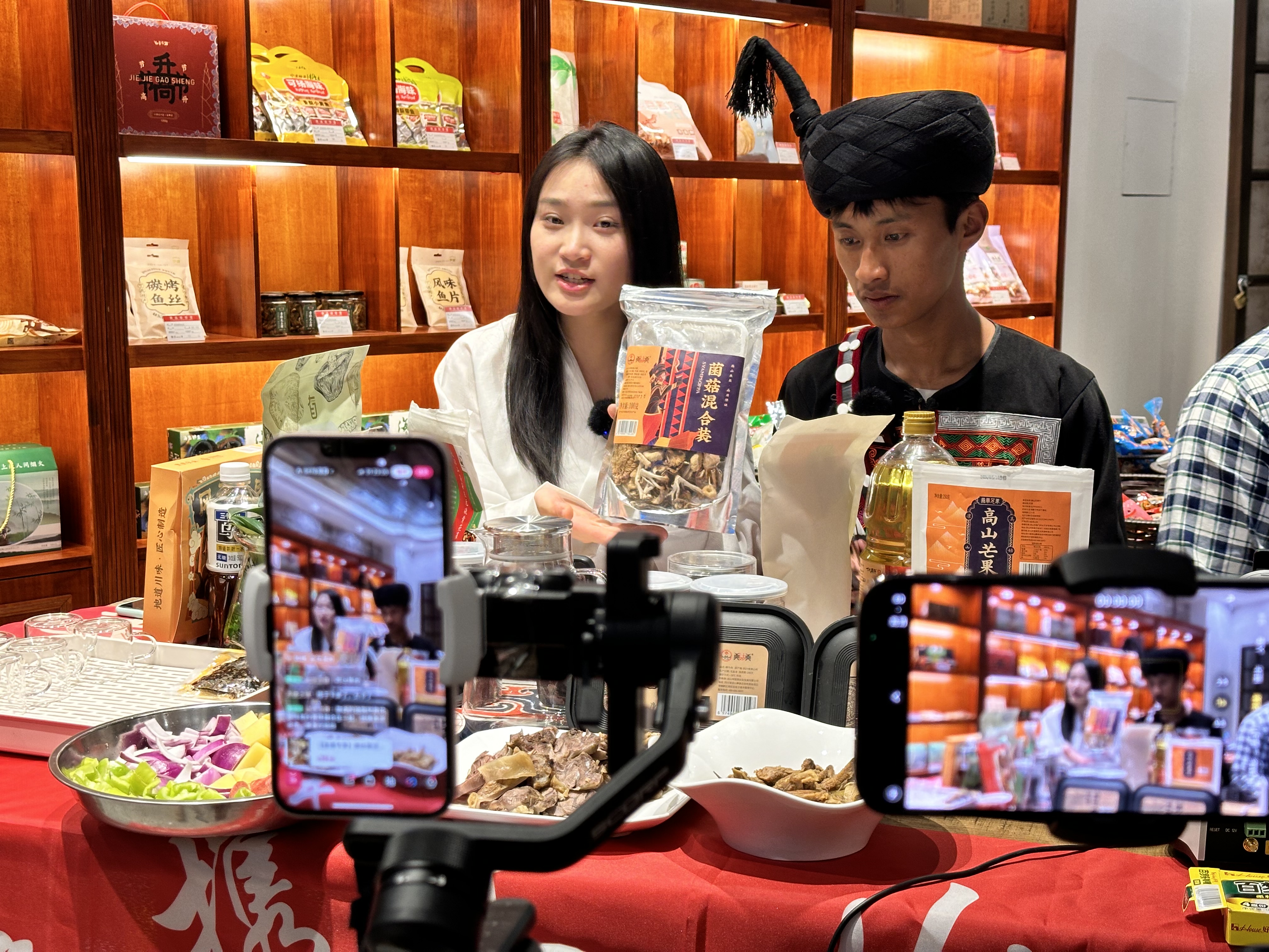 “噶喲啦,吉莫吉西喲!”“這是我們的美姑黃牛肉,旖旎的山水美景,孕育肉質鮮美的高原黃牛肉,您一定不能錯過。”在海拔兩千多米的黃茅埂上,由北侖職高學子曲比金作(彝族)、曲比木日(彝族)、顧喆彥組成的“主播團”以飽滿的熱情和專業的素養,向廣大網友推介了涼山特色產品。他們身著民族服飾,用生動的語言和真摯的情感,向屏幕前的觀眾推介著高原黃牛肉、美姑干核桃、苦蕎掛面等特色產品。同時,他們還結合當地的文化旅游資源,展示了涼山獨特的自然風光和民俗風情,吸引了大量網友的關注和參與,累計銷售額達20萬元。