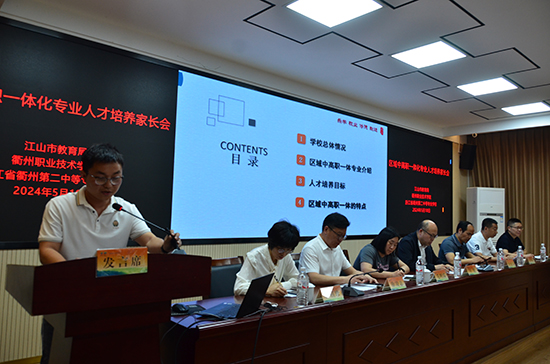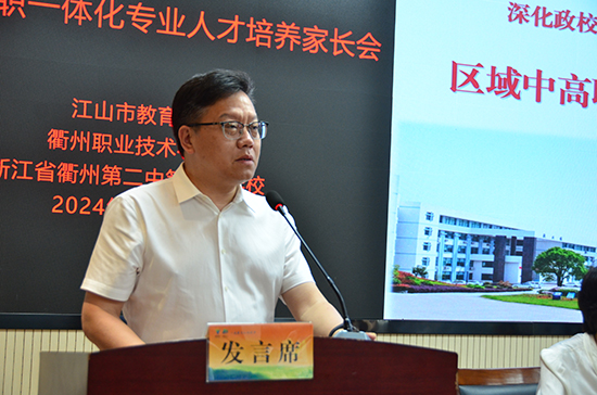 衢州第二中專教務處負責人作區域中高職一體化培養模式解讀,他詳細介紹了學校在專業設置、課程體系、師資隊伍、實訓條件等方面的具體做法和取得的成效。他強調,中高職一體化教育旨在實現中職和高職教育的無縫對接,確保學生在五年一貫制的培養過程中能夠平穩過渡、能力遞進。