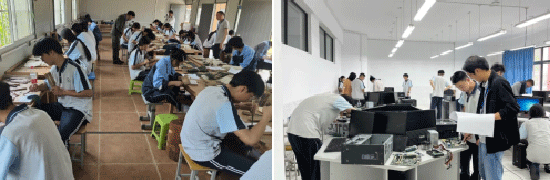為提高中職畢業生的就業競爭力和技能水平,活動周期間,學校技能等級認定工作有條不紊地開展。通過考評專家技能等級評定,本次共13個專業,500余名學生獲得相應的技能等級證書。