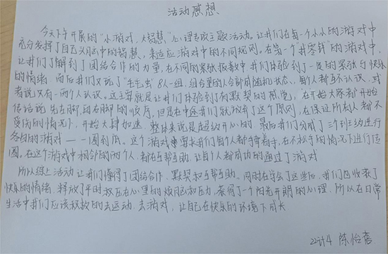 每一個挑戰(zhàn)都鍛煉了同學(xué)們的協(xié)作能力,每一次分享都讓我們更加了解內(nèi)心的聲音。讓我們帶著這份收獲,繼續(xù)前行,用更加開放的心態(tài)去迎接未來的每一次挑戰(zhàn),攜手共創(chuàng)更加美好的明天!(王滉)