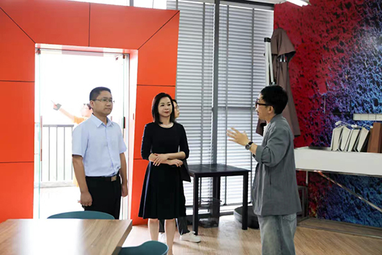 楊斌一行先后參觀了美育展示廳、服裝智能仿真結(jié)構(gòu)工作室、“色彩運(yùn)用+趨勢(shì)”工作坊、“童裝品牌+設(shè)計(jì)”工作坊、品牌營(yíng)銷+陳列工作坊、黨建長(zhǎng)廊、藝承工作室、學(xué)生事務(wù)中心、一爾皮具工作室、匠心坊、箱創(chuàng)、服裝EPC實(shí)訓(xùn)室、旅游實(shí)訓(xùn)室展廳及名師長(zhǎng)廊等場(chǎng)所,并深入了解學(xué)校在師資隊(duì)伍建設(shè)、特色學(xué)校發(fā)展情況、學(xué)校教育教學(xué)質(zhì)量等多方面的情況。