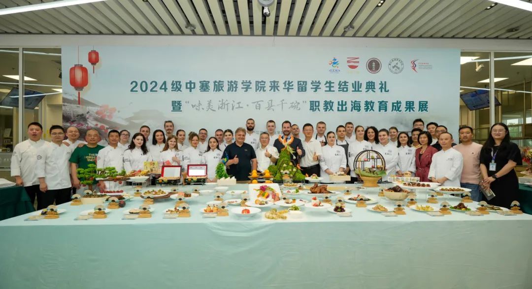 學校師生還觀看了2024級中塞旅游學院來華留學生結(jié)業(yè)典禮,浙旅院領導給留學生頒發(fā)了結(jié)業(yè)證書和職業(yè)技能等級證書,這是浙江省首次向外籍人士頒發(fā)烹飪職業(yè)技能等級證書。