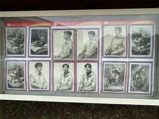 這些精美作品的背后,是老師和同學們無數個日夜的辛勤付出。布展現場,在22美工1班專業課老師金靚的帶領下,他們忙碌而有序地工作著。在布展過程中,同學們展現出了對藝術的追求和對完美的執著。他們不斷調整細節,精益求精,只為讓作品呈現出最佳的效果。無論是作品的色彩搭配、線條勾勒,還是整體的布局設計,都體現了同學們對藝術的熱愛和對專業的敬畏。有的同學在調整作品的擺放位置,確保每一幅作品都能以最佳的角度呈現給觀眾;有的同學在擦拭畫框,確保作品的整潔與美觀;還有的同學在協助搬運大型作品,雖然汗水浸濕了衣衫,但他們的臉上卻洋溢著滿足和自豪的笑容。
