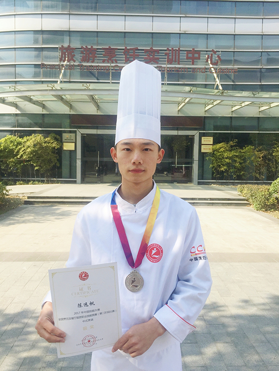 在德清職業中專烹飪專業技能集訓隊訓練的日子里,每天5:00必會準時起床背誦理論知識,技能的訓練更是會到晚上11:00才結束。在這段艱苦而又充滿壓力的日子中,唯一幸運的便是我的身邊始終都有指導老師耐心地陪伴著。最終我在全國烹飪大賽中榮獲金獎,用三年的艱苦努力換來夢想的大學生活。