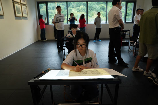 開館儀式中,同學們在班主任倪曉余老師的帶領下,于館內進行速寫創作。中國美術家協會主席范迪安,嵊州市委書記裘建勇,劉文西兒子劉丹、女兒劉山花,西安美術學院副院長何軍,西安美術學院版畫系副主任劉益春一同來到現場,欣賞點評學生的創作,對學生給予了高度評價。范迪安先生還輕拍同學們的肩膀,鼓勵他們要努力考入中國著名的美術學院深造。領導和專家們親切的笑容和溫暖的話語無不鼓舞著同學們,苦練基本功,把中國的繪畫藝術傳承下去、發揚出去。