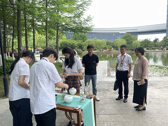 在大學(xué)老師的引導(dǎo)下,同學(xué)們來到了茶藝空間和茶藝教室進(jìn)行參觀和體驗(yàn),其中的選茗、烹茶技術(shù)、茶具樣式和環(huán)境的選擇創(chuàng)造等內(nèi)容讓大家耳目一新,同學(xué)們沉浸式體驗(yàn)了茶藝與美學(xué)的融合。