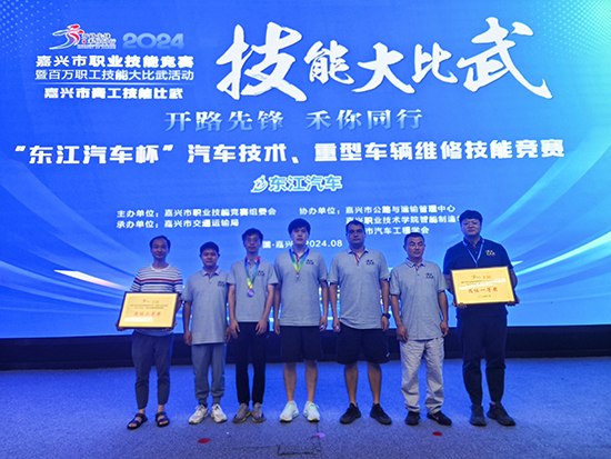 經過專業理論和專業技能兩個競賽內容的綜合比拼,最終,張悅獲得汽車技術賽項二等獎(第二名),呂宇倫獲得重型車輛維修技能賽項三等獎。同時,榮獲嘉興市職業技能競賽暨百萬職工技能比武活動“東江汽車杯”汽車技術技能競賽團體一等獎,重型車輛維修技能競賽團體二等獎。