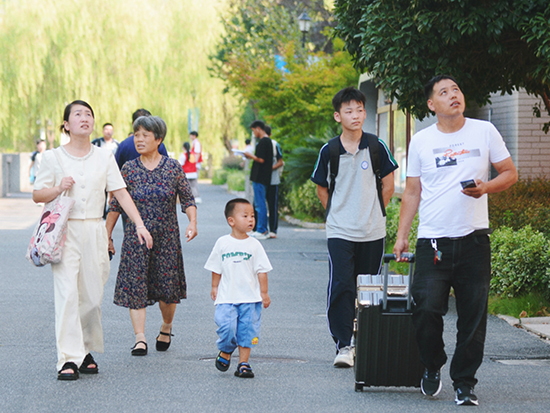 有“全家總動員”的溫馨場景,祖孫三代攜手同行,有“爸”氣十足的堅實背影,父親們拖著沉甸甸的行李,步伐穩健,為孩子撐起一片天,有母親溫婉慈愛的聲聲叮囑,為入學添上了一抹柔情的色彩。