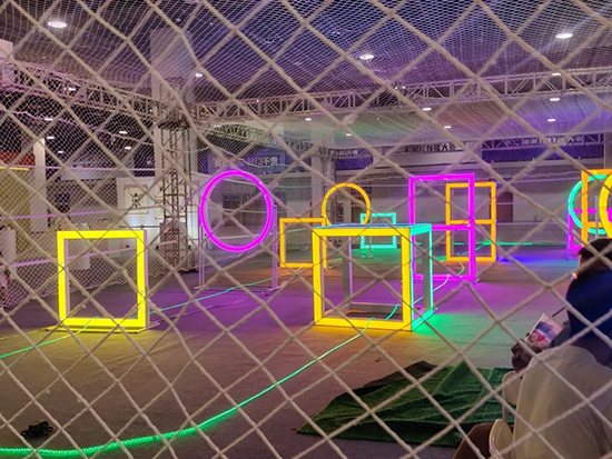 本次永康城市生活藝術展由五金城集團團委主辦,以“活力永康”為主題,以攝影、繪畫、裝置藝術等形式,設置了飲食男女街區、青年文創街區、潮玩運動街區、朋克養生街區、演藝空間等多個展演區域。將個人的藝術才華與本土文化相融合,傳遞青年藝術家們對社會、時代的自我觀照,向社會展現藝術創作的勃勃生機。作為青年文創街區的重要項目之一,永康五金技師學院無人機專業的參展為這場盛會增添了一抹獨特的科技亮色。
