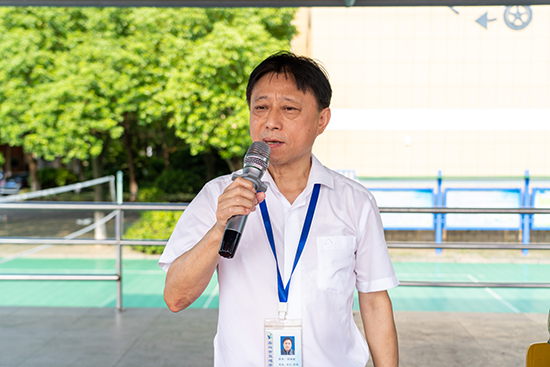 新生班主任代表王峰老師發言。他表示,軍訓是同學們成長道路上的一次重要歷練,它不僅能錘煉我們的體魄,更能塑造我們的精神。作為班主任,也將在軍訓期間一路陪伴,記錄下同學們的點點滴滴。祝愿2024級新生在軍訓中鍛煉強健的體魄,塑造堅韌的品格,開啟中職生涯的新篇章。