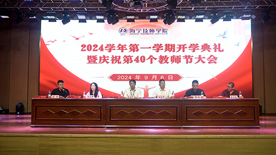 載夢共成長,揚帆新征程,9月6日上午,海寧技師學院通過線上、線下相結合的方式隆重舉行了2024學年第一學期開學典禮暨慶祝第40個教師節活動。院黨委書記陳海鋒,院黨委副書記、院長姚忠杰,副院長王立群、周剛、潘曉剛,企業嘉賓浙江朗視儀器有限公司副總經理陳家桃出席,典禮由副院長程鋒主持。