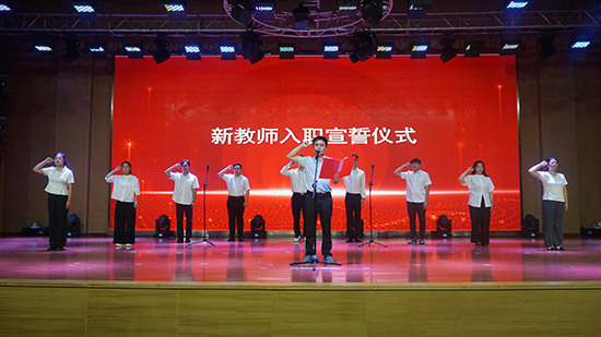 “我宣誓——我志愿成為一名人民教師,忠誠黨的教育事業,遵守教育法律法規……”9名新教師在嘉興市中小學師德楷模李德恒老師帶領下莊嚴宣誓,接受入職第一課,正式開啟教書育人的新征程。隨后,新教師向指導師父獻花、行拜師禮,一個儀式,架起了一座座“青藍”之橋,凝“新”而聚,任重道遠。