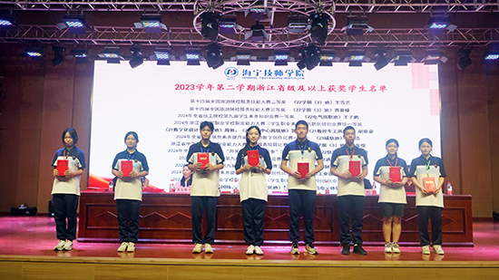 春華秋實又一年,碩果盈枝滿庭芳。院領導分別宣讀了2023學年第二學期嘉興市級及以上各類活動獲獎,海寧市級優秀班級、優秀學生、校級“十佳班級”“優勝班級”,校級各類先進學生名單,并為他們頒發了榮譽證書。
