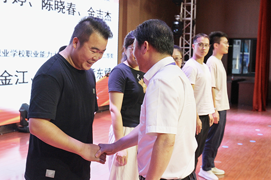 擇一事,終一生,秉“匠心”,育“匠苗”。院黨委書記陳海鋒為浙江工匠陳曉春、嘉興巧匠華祖榮、嘉興良匠章東斌和2024年浙江省中等職業學校“多彩課堂”(專業課類)三等獎獲得者李葉、郝婷婷、陳曉春、金志杰以及2024年浙江省中等職業學校職業能力大賽教師教學能力比賽二等獎獲得者華祖榮、金江、陸佳浩、章東斌頒獎。