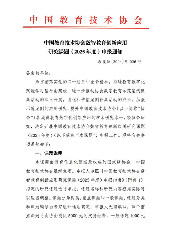 數智教育創(chuàng)新應用研究課題(2025年度)申報通知