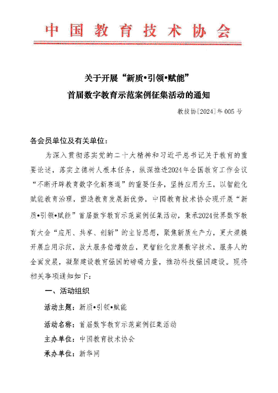 2024全國數字教育示范案例征集活動的通知