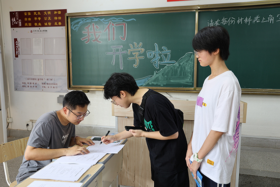 教室里貼心溫暖的歡迎板書,寢室床鋪上整齊擺放的生活用品,無不透露出班主任與教職工們的辛勤與關(guān)懷。一遍遍耐心指引,一趟趟手提肩扛,從報(bào)到注冊(cè)到交通指引,從行李搬運(yùn)到校園導(dǎo)覽,每一環(huán)節(jié)都力求盡善盡美。師生志愿者們雖額頭冒汗,嗓音漸顯疲憊,卻只是輕輕一抹汗水,匆匆潤喉,隨即以更加燦爛的笑容再次投入到緊張而有序的服務(wù)工作中。這些忙碌而充滿活力的身影,構(gòu)成了校園中一道亮麗的風(fēng)景線。