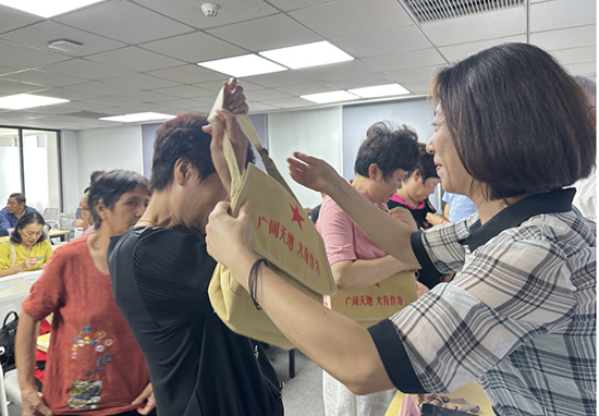 昆鵬社區(qū)學校為學員準備了校徽、書包、筆記本等,并于開班儀式上舉行了授予儀式。開班儀式上,在場領導親自為學員們佩戴校徽,背書包,喜笑顏開,仿佛回到了少時,樂得合不攏嘴。