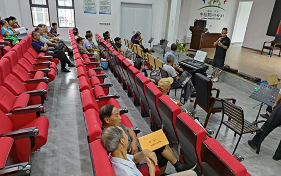 課上,老人們認真學唱;課下,老人們或探討曲譜,或聊天說笑,一派其樂融融的景象。(儲成繼)
