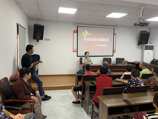 10月5日,安吉縣遞鋪成校在桃城社區(qū)開展以“學防詐知識,捂好錢袋子”為主題的防詐培訓,來自農(nóng)科區(qū)的55位老年人參加此次活動。