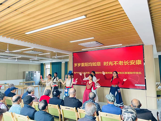 隨后,一場精彩的民族舞蹈串燒將活動(dòng)推向了高潮,同學(xué)們身著各民族傳統(tǒng)服飾,用輕盈的舞步和絢爛的色彩展現(xiàn)了中華民族多元文化的魅力,贏得了老人們的陣陣掌聲和歡笑。活動(dòng)中,同學(xué)們還親手為老人們獻(xiàn)上了康乃馨和新鮮水果,每一份禮物都承載著青年學(xué)子對長輩的尊敬與關(guān)懷。