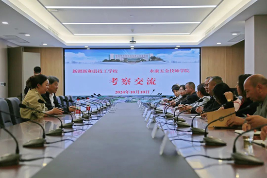 10月10日下午,新疆維吾爾自治區(qū)新和縣技工學(xué)校一行16人在庫爾班·阿吾提副校長帶隊下,來永康五金技師學(xué)院考察交流。永康五金技師學(xué)院常務(wù)副院長王鐘寶等領(lǐng)導(dǎo)陪同調(diào)研。