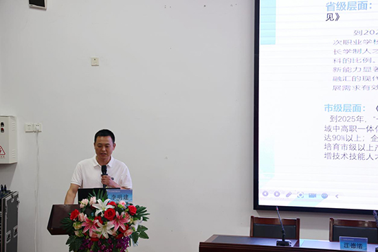 樂清市教育局職成教科科長李明建作2024下半年中職教育工作部署。他圍繞產(chǎn)教融合、校企合作、技能大賽、師資培訓(xùn)等多個(gè)方面,提出了具體的工作措施和目標(biāo)任務(wù),強(qiáng)調(diào)要持續(xù)深化教育教學(xué)改革,加強(qiáng)內(nèi)涵建設(shè),提升職業(yè)教育服務(wù)地方經(jīng)濟(jì)社會發(fā)展的能力。