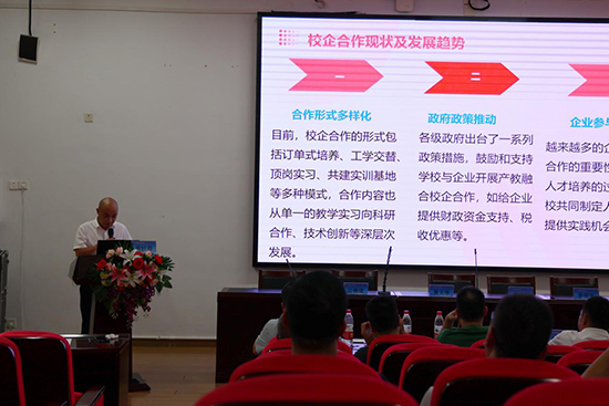柳市職業(yè)技術(shù)學(xué)校副校長黃時(shí)周作《產(chǎn)教融合精準(zhǔn)育人,為地方經(jīng)濟(jì)快速發(fā)展服務(wù)》經(jīng)驗(yàn)分享。黃副校長從合作模式、實(shí)踐基地、隊(duì)伍建設(shè)、課程開發(fā)與教材,以及保障機(jī)制建設(shè)等方面作深度分享,四種創(chuàng)新的產(chǎn)教融合模式啟發(fā)與會中職學(xué)校新的融合路徑。