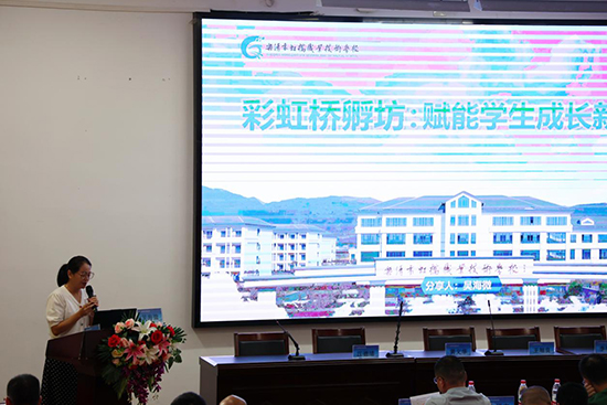 虹橋職業(yè)技術(shù)學(xué)校副校長吳海微作《彩虹橋孵坊:構(gòu)筑學(xué)生培育新生態(tài),賦能學(xué)生成長新征程》主題分享,搭建彩虹橋孵坊這一全新的教育教學(xué)生態(tài)環(huán)境,讓每位中職學(xué)子像牡丹般勇敢綻放,讓每朵“苔花”都有屬于自己的春天。
