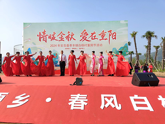 連日來,安吉縣社區教育學院孝豐分院老年學員“九九重陽節濃濃敬老情”文藝匯演先后走進竹根前村、三眼井社區、南臺社區、白楊村文化禮堂。老年學員與當地群眾歡聚一堂,載歌載舞,歡度重陽佳節。