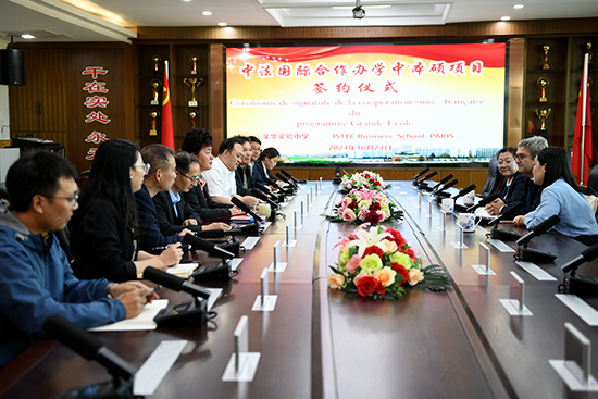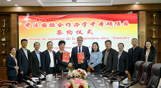 在熱烈的掌聲中,雙方正式簽署了中法國際合作辦學中本碩項目的合作協(xié)議。該協(xié)議的簽署標志著兩校將在本碩連讀、學生交流和學習訪問等方面展開深入合作,共同培養(yǎng)具有國際競爭力的復合型專業(yè)人才,推動中法教育合作與文化交流。