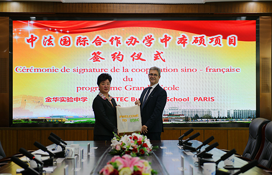 正值中法建交60周年暨中法文化旅游年之際,中法教育合作迎來了新的發(fā)展機遇。為深化國際教育交流,拓展學生的全球視野,10月24日下午,金華實驗中學與法國ISTEC高等商學院在精技樓會議室隆重舉行合作辦學簽約儀式。法國ISTEC高等商學院的Pierre Larrat教授和語言中心、法語預科項目負責人劉若靜女士跨越重洋、不遠千里而來,與金華實驗中學共同開啟中本碩項目的合作之旅。