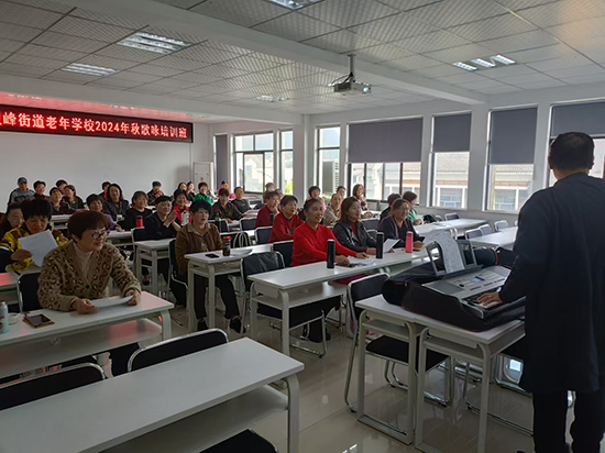 10月30日上午,安吉縣社區教育學院靈峰街道老年學校(靈峰成校)內歌聲悠揚,一場充滿活力的歌詠培訓正在火熱進行。來自靈峰街道各個社區的近五十名歌唱發燒友滿懷熱情地參與其中。