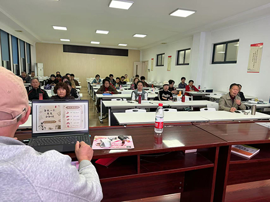昌碩成校邀請安吉縣科達(dá)職業(yè)技能培訓(xùn)學(xué)校養(yǎng)生專家趙立彬擔(dān)任此次培訓(xùn)的主講人。他憑借豐富的專業(yè)知識和實踐經(jīng)驗,為老年朋友們帶來了一場精彩的養(yǎng)生知識盛宴。在培訓(xùn)過程中,趙立彬?qū)<医Y(jié)合PPT演示,深入淺出地講解老年養(yǎng)生的重要性,并分享許多實用的養(yǎng)生小技巧,如合理飲食、適度運動、保持良好的心態(tài)等。老年朋友們聚精會神,不時拿起筆記錄下重要的知識點。