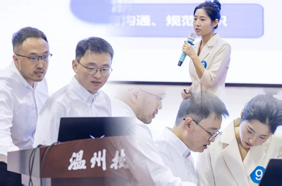 在現場決賽中,三位教師認真準備,參照有關評分標準,從單元整體備課視角設計指向工學一體主題教學活動,教學思路清晰,理論和實際操作相結合。最終,團隊教師合作默契,沉著冷靜,穩定發揮,圓滿完成說課和答辯環節。