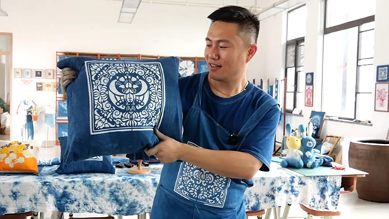 如今,他開設(shè)的“青逢布落”藍(lán)染工作室,進(jìn)一步帶動學(xué)生社團(tuán)活動。指導(dǎo)學(xué)生學(xué)習(xí)藍(lán)染技藝的同時,制作出各式各樣的文創(chuàng)周邊作品。放眼整個工作室,有掛滿風(fēng)格迥異、花樣繁多的藍(lán)印花布的展架,有擺放玩偶、服裝、包包等藍(lán)染作品的展桌,上面都是呂秀輝和學(xué)生們的杰作。“我們要做的不單純是染布,而是要將藍(lán)印花布變成文創(chuàng)產(chǎn)品,通過產(chǎn)品讓更多人對靛青白花印染技藝感興趣,從而更廣泛傳播這項非遺技藝。”呂秀輝說,他將繼續(xù)和學(xué)生們研究新作品,推動非遺融入現(xiàn)代生活,展現(xiàn)傳統(tǒng)文化的新時代魅力。(盧俊龍 應(yīng)雨虹 胡洛伊)