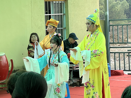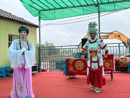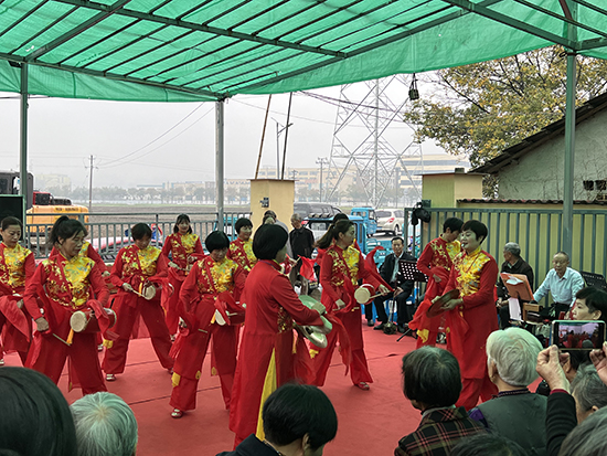 場地雖然簡陋,但活動現場氣氛熱烈活躍,吸引了眾多村民前來觀看。在開場的鑼鼓聲中整體氣勢十足、魅力有范的《迎賓鑼鼓》拉開序幕,越劇《王老虎搶親——戲豹》《何文秀——心連心》《山河戀——送信》、舞蹈《歡聚一堂》等精彩紛呈的節目悉數登場,上墅老年學校銀齡曲藝班的學員們通過戲曲、舞蹈、快板、大鼓等表演方式用文化熱潮引領鄉村文明風尚,用文化大餐滋養豐富群眾精神食糧,演出高潮之處引得村民的陣陣掌聲,全場洋溢著歡樂祥和的氣氛。“今天的戲真好!演出水平也高,我們看得過癮。”劉家塘村民李大伯對活動贊不絕口。