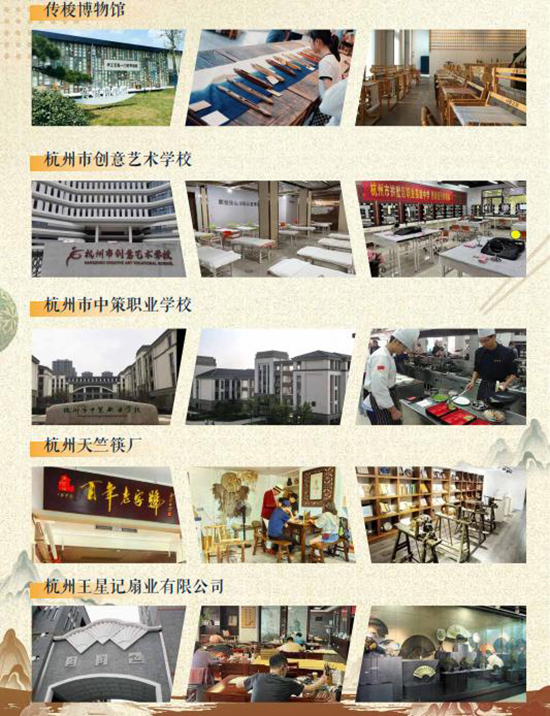 2022年,項目團隊成員陸續走訪調研了工匠技藝生產性基地、相關企業,非遺大師工作室,傳統老手藝學習點。通過“政校企社”協同,兩年來陸續挖掘培育了“杭州天竺筷廠”“杭州王星記扇業有限公司”“傳梭博物館”“杭州市中策職業學校”“杭州市創意藝術學校”“百草園”“慧廬琴堂”“武林之光非遺傳習中心”……等9個“行走的工匠”終身學習體驗基地,在拱墅區終身學習活動周開幕式上授牌。各工匠基地有的集工藝博物館和學習體驗場于一體,有的將工作生產場所和場館參觀體驗融一體,有的結合鄉村微型博物館和工匠技藝培訓點,各具特色,建立以來受到了市民們的歡迎。“行走的工匠”項目基地年均接待市民公益體驗學習活動10000余人次,開展“匠心之旅”研學活動100余場,市民們既能在城市參與各類型的非遺技藝體驗培訓,又能與鄉村進行文化互動,項目的實施促進了工匠技藝從靜態向活態傳承,為弘揚傳統技藝所蘊含的文化精髓和價值、發展優秀傳統鄉土文化提供了零距離感受、體驗和學習的陣地。