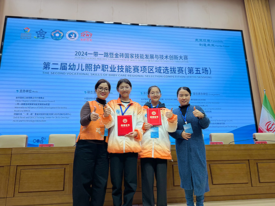 與此同時,由竺婷蘭、謝玉飛兩位老師指導的23保育大專班竇維婭、周慧芳同學,在2024一帶一路暨金磚國家技能技術創新大賽第二屆幼兒照護職業技能賽項區域選拔賽中榮獲二等獎,位居浙江省第一名,成功晉級即將舉行的全國總決賽,她們在決賽中一定會有更精彩的表現。(黃宵)