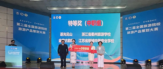 11月14日至16日,由中國旅游協會旅游教育分會、云南旅游職業學院主辦,杭州領云軟件有限公司 、云南省職業技術教育學會、云南智慧康養旅游產教融合共同體協辦的第二屆全國旅游院校旅游產品策劃大賽全國總決賽在云南昆明成功舉辦。由衢州旅游學校旅游服務與管理專業陳佳怡、馬欣穎、王啟匯、方園紅組成的“逐光見山”團隊和張卓越,鄭子翌,鄭寧,王祺睿組成的“暗夜守護者”團隊,經過現場激烈地角逐,最終突出重圍,喜獲大賽特等獎(第一名)和一等獎,衢州旅游學校獲得“優秀組織院校”獎,載譽而歸。