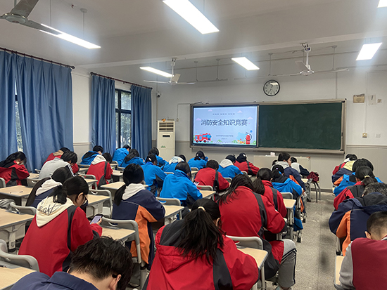 各班利用班會課開展主題消防教育班會,學習日常生活中遭遇火災時逃生自救十法,增強師生“認識火災,學會逃生”的意識。