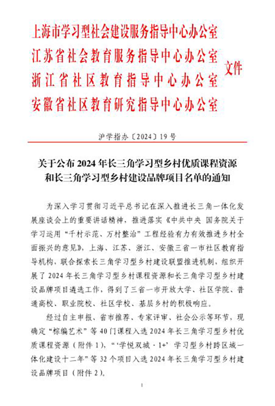 近日,上海、江蘇、浙江、安徽三省一市社區(qū)教育機(jī)構(gòu)公布了2024年長三角學(xué)習(xí)型鄉(xiāng)村優(yōu)質(zhì)資源和長三角學(xué)習(xí)型鄉(xiāng)村建設(shè)品牌項(xiàng)目入選名單,齊賢成人文化技術(shù)學(xué)校報(bào)送的《齊賢老娘舅,家風(fēng)潤無聲》成功入選2024年長三角學(xué)習(xí)型鄉(xiāng)村優(yōu)質(zhì)資源名單。