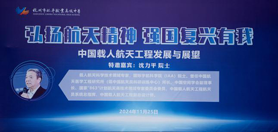為深入學(xué)習(xí)航天精神,激發(fā)學(xué)生的愛(ài)國(guó)情懷,筑牢責(zé)任擔(dān)當(dāng),并啟迪學(xué)生的創(chuàng)新思維,凝聚團(tuán)結(jié)協(xié)作向心力,以航天逐夢(mèng)征程砥礪奮進(jìn)之志,11月25日下午,杭州市臨平職業(yè)高級(jí)中學(xué)特邀載人航天科學(xué)技術(shù)領(lǐng)域?qū)<摇?guó)際宇航科學(xué)院(IAA)院士沈力平來(lái)校,為同學(xué)們開(kāi)設(shè)了一場(chǎng)主題為“中國(guó)載人航天工程發(fā)展與展望”的精彩講座。本次講座采用線上+線下方式進(jìn)行,各班教室設(shè)分會(huì)場(chǎng),學(xué)生在任課教師組織下認(rèn)真觀看直播。