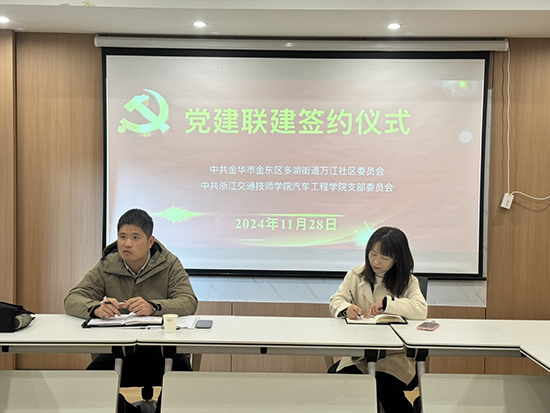 為深入貫徹黨建引領社區與學校協同合作的理念,強化基層黨組織間的互動交流,11月28日,中共浙江交通技師學院汽車工程學院黨支部與中共金華市金東區多湖街道萬江社區委員會于萬江社區成功舉行黨建聯建簽約儀式。
