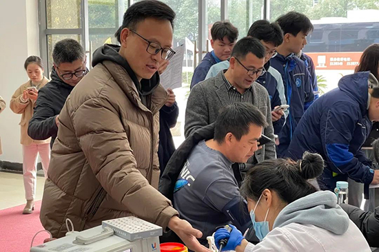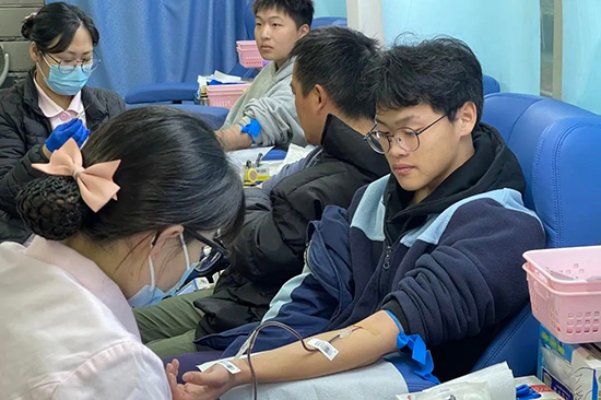 獻血站點前,師生們認真地填寫著各種表格,耐心地接受體檢和血液化驗。在醫(yī)護人員的悉心指導下,師生們一個一個順利完成了抽血過程。