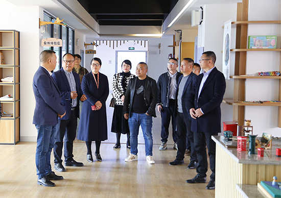 項建微一行參觀了學校木玩創新服務綜合體,深入了解學校木玩特色專業的建設情況,詳細詢問專業課程設置、木玩產品研發、師資力量等情況,對學校在積極探索教學成果轉化、產品開發、市場營銷等方面的做法深表贊賞。