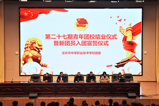 12月12日中午,玉環市中等職業技術學校在學校大報告廳隆重舉行第二十七期青年團校結業典禮暨新團員入團宣誓儀式。學校副校長金松,政治輔導員蔡其標、汪光岳、王金偉,團委書記袁安及344名結業學員參加。儀式由團委副書記林旭環主持。