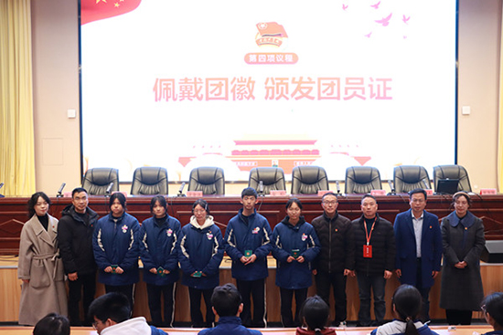 金松、蔡其標、汪光岳、王金偉、袁安共同為新團員代表佩戴團徽,并頒發團員證。這一莊嚴的時刻讓每一位新團員都感受到了團組織的溫暖和榮譽。