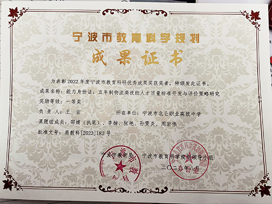 2022年度寧波市教育科研優秀成果獎