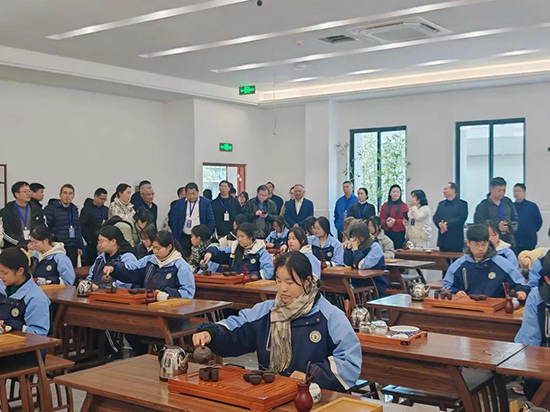 在茶旅工場中,與會嘉賓體驗了茶藝表演,觀看了茶專業師生們優雅的泡茶動作和茶湯在茶杯中翻滾的景象,感受到茶文化的韻味。此外,與會嘉賓還品嘗了由茶專業學生純手工制作而成的茶葉,對其茶葉品質贊不絕口。